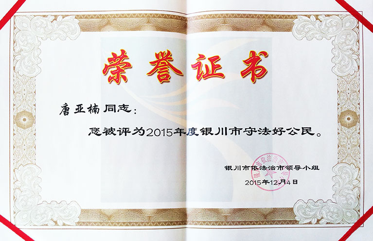唐亞楠總經理榮獲“2016年度安全生產工作先進個人”榮譽稱號