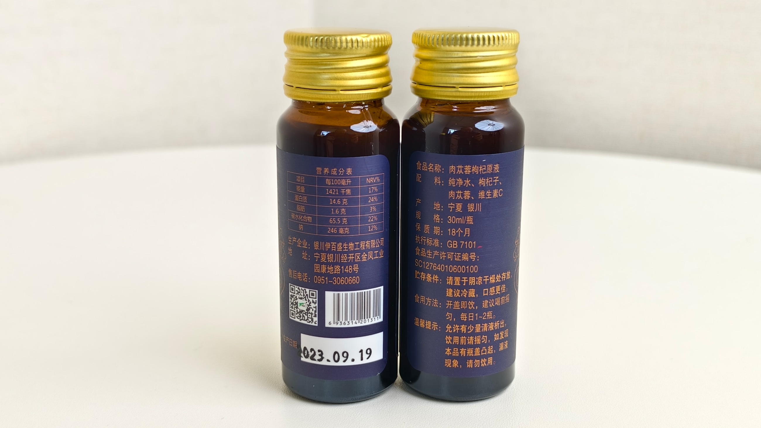 【配料】純凈水、枸杞子、肉蓯蓉(帶鱗葉的肉質(zhì)莖)